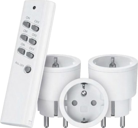 Met deze drie slimme stekkerdoos schakelaars geniet je van meer gemak. Je kunt deze schakelaars in een willekeurig stopcontact steken. Vervolgens kun je de juiste stekkers aansluiten en bedienen gaat eenvoudig met de meegeleverde afstandsbediening.