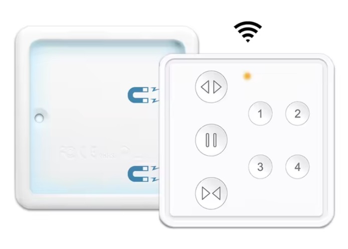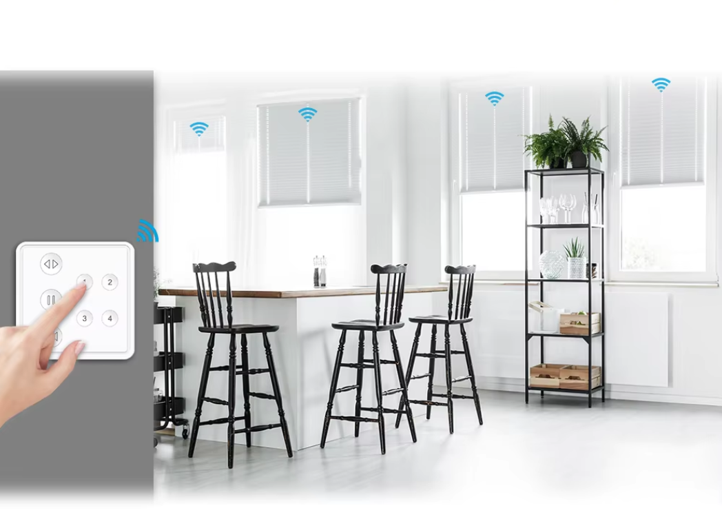 Deze stijlvolle draadloze RF-afstandsbediening maakt het bedienen van je Slimme Rolluikschakelaars eenvoudiger dan ooit. Dankzij de 4 groepen kun je meerdere schakelaars bedienen, zoals aan/uit schakelen en pauzeren.