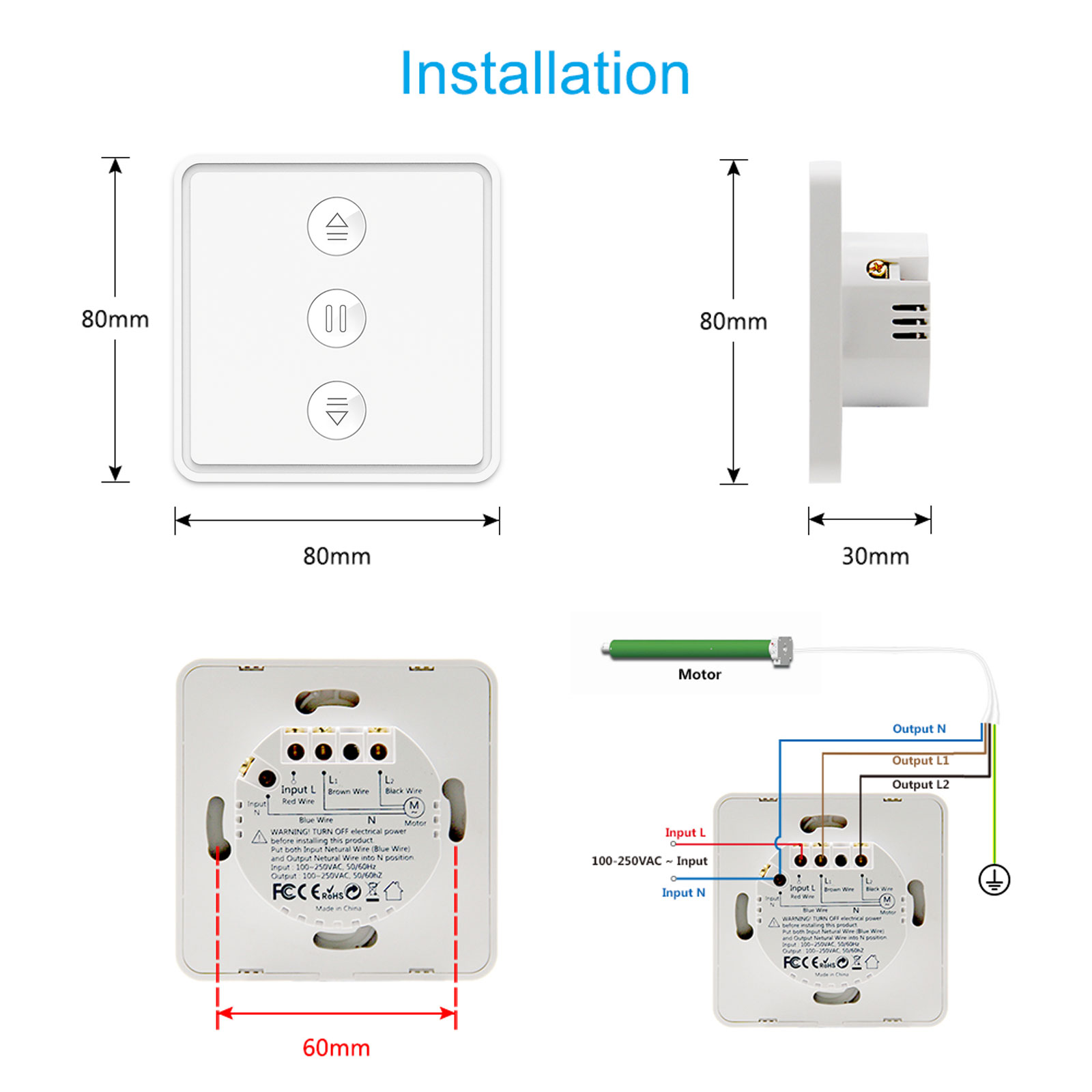 - Ingangssterkte: 100-250V AC, 50/60Hz