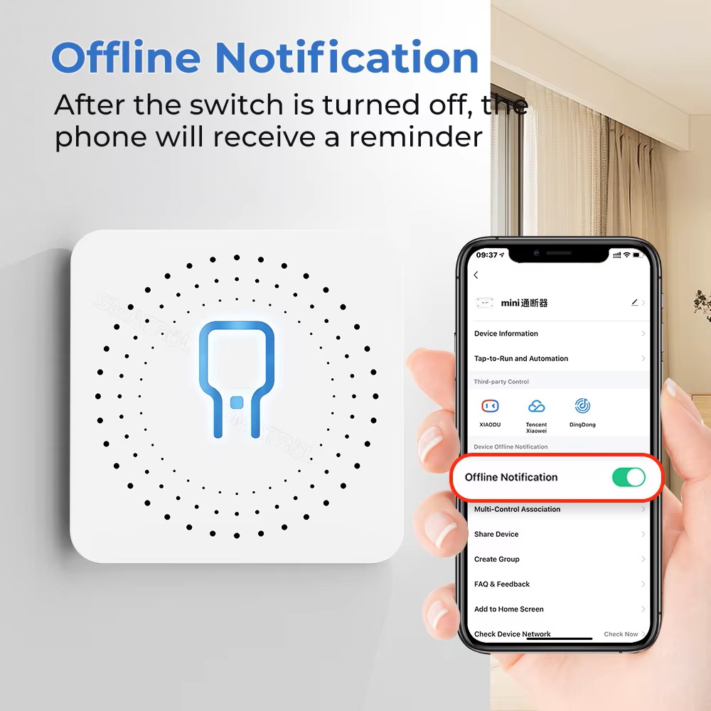 Met deze slimme inbouwschakelaar verander je traditionele apparaten in slimme, op afstand bedienbare apparaten. Schakel verlichting en andere huishoudelijke apparaten eenvoudig in of uit via je smartphone, waar je ook bent. Geen ingewikkelde installatie nodig – deze module werkt direct via WiFi en vereist geen extra hub.