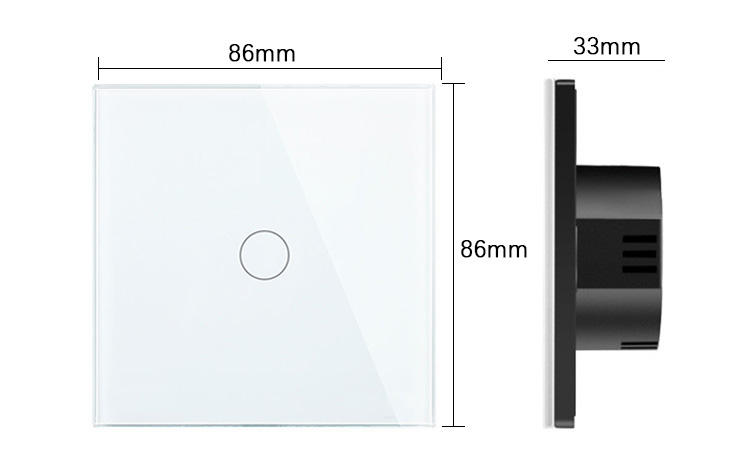 - Afmetingen schakelaar: 86 × 86 × 40 mm (25 mm inbouwdiepte)